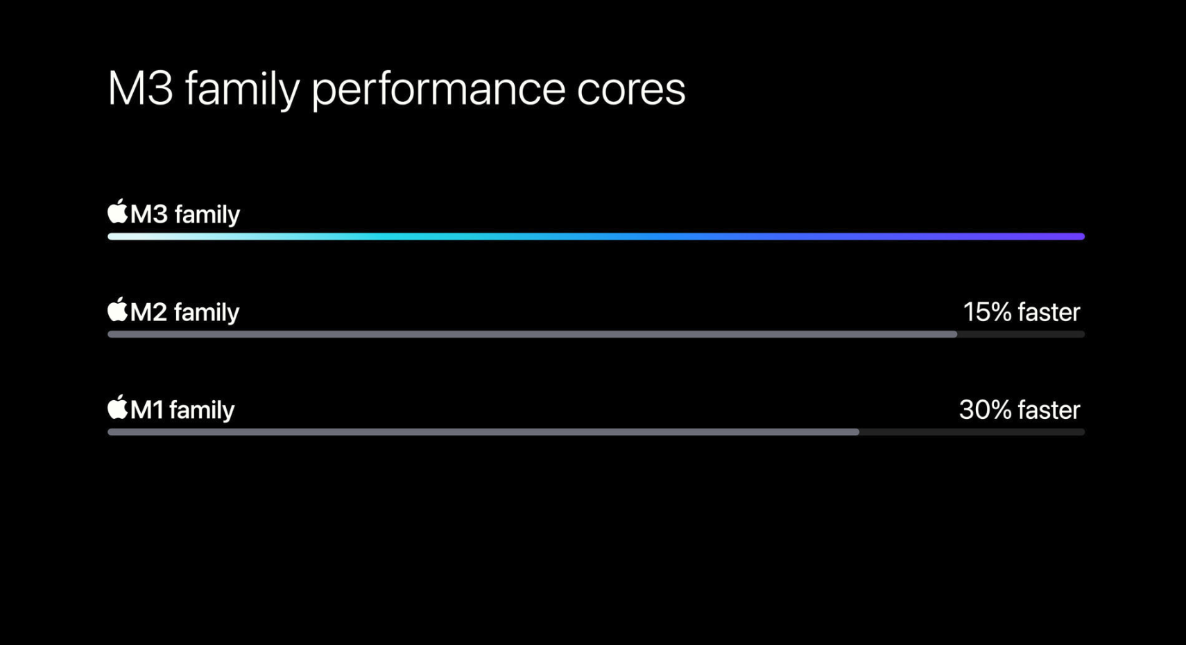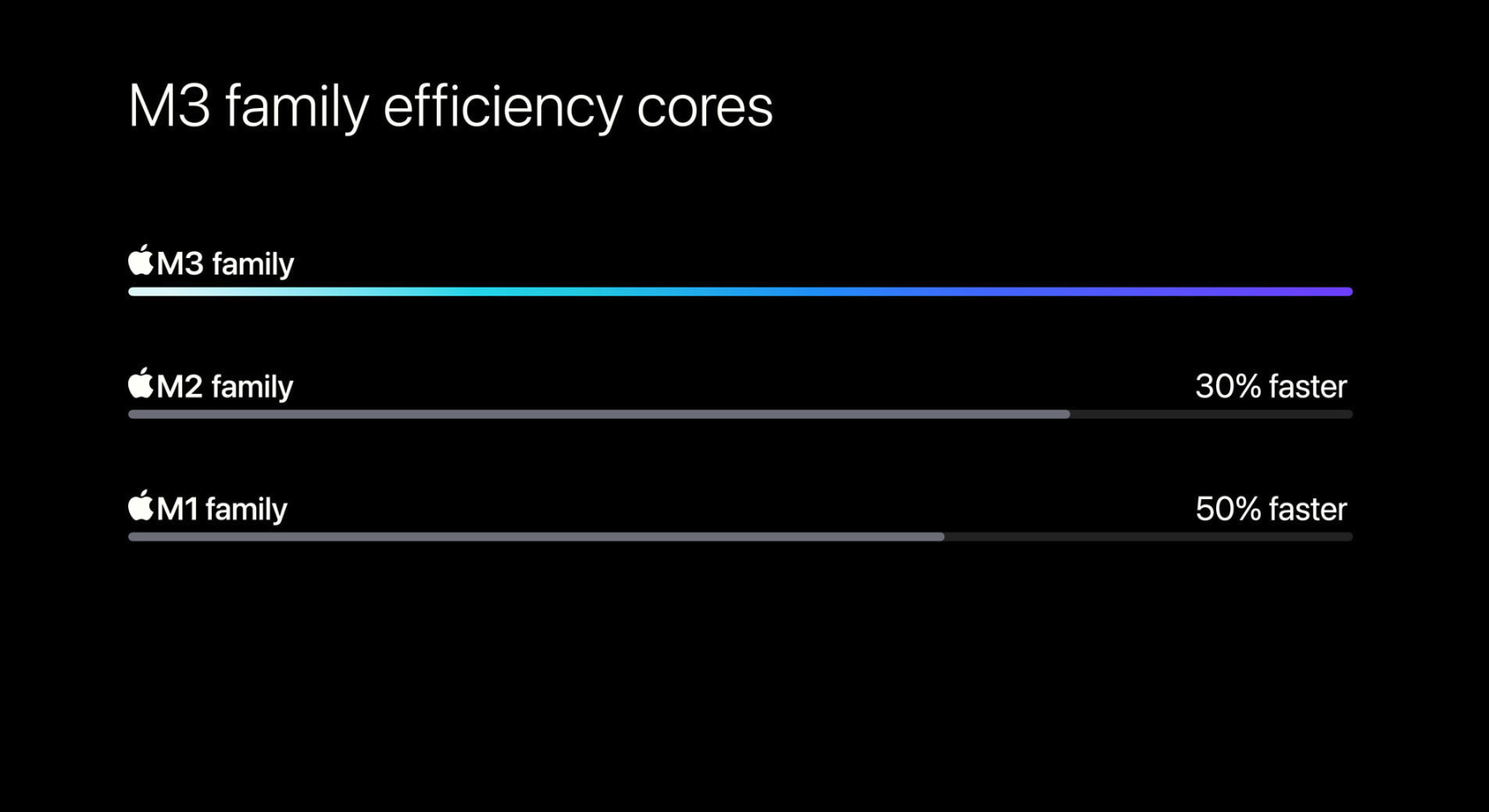 M3 칩셋은 3나노 공정 기반의 애플 실리콘 칩셋이다. 참고로 M1 칩셋은 5나노미터 공정 기반으로 제작되었다. 덕분에 같은 공간에 더 많은 트랜지스터가 들어가면서 속도와 효율성이 개선되었다.