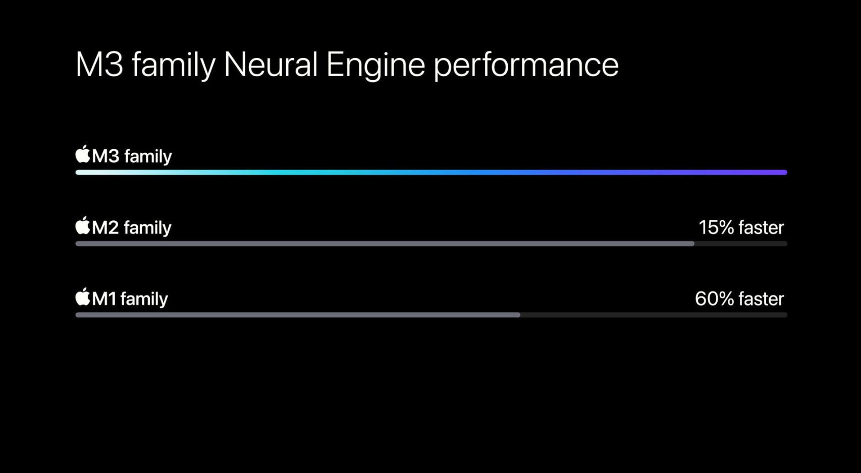 M1 대비뉴럴 엔진(Neural Enging) 처리 속도는 60% 향상되었고, 특히 다이나맥 캐싱(Dynamc Caching)이라는 새로운 기술이 도입되면서 렌더링 속도가 최대 2.5배가 향상되었다.